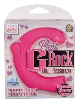 The Mini G Rock Total Pleasurizer is totally manoeuvrable and it is perfectly curved to simultaneously stimulate the G-spot and the clitoris. Made from soft, flexible, unscented silicone and available in 2 colours, these G Rocks are waterproof and come with a push button vibrating bullet. Get ready to G Rock and roll! (Batts Inc) |