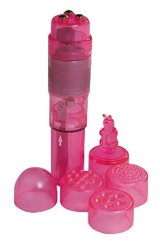 Reach all the right spots and reduce stress with this incredible personal massager. Choose from 5 sensuous massage heads and give your achy muscles some well deserved relief. The powerful pulsation stimulate nerve endings and relieve tension caused by stress, giving your body an invigorating experience everytime. For those extra sensitive areas, let the bunny massage head tease and excite your erogenous zones. (1AA) |