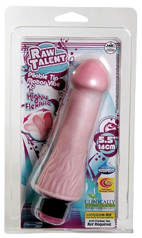 From it's pliable tip; along its highly flexible, pretty pink shaft to its multi-speed controller base this vibe is 5.5" of RAW TALENT. Totally waterproof, phthalate free and made from loveclone RX. The raw talent is destined to become a star! 1 x AA battery |