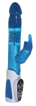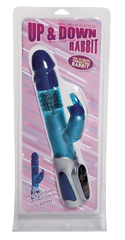 7" Up & Down Thrusting Rabbit Vibe with 4 Rings of Up & Down Beads, Multi-Speed - Blue (4AAA) |